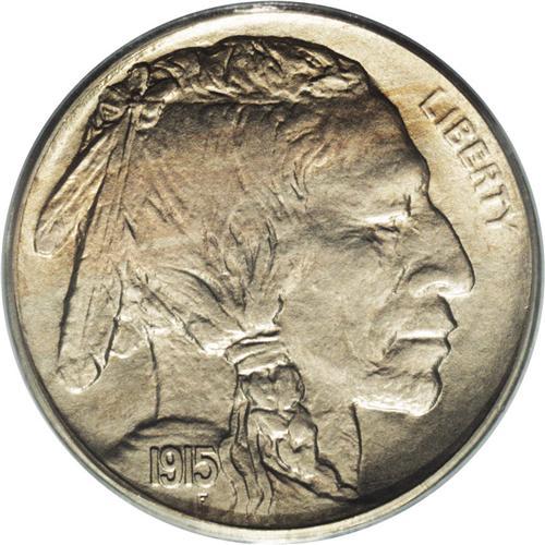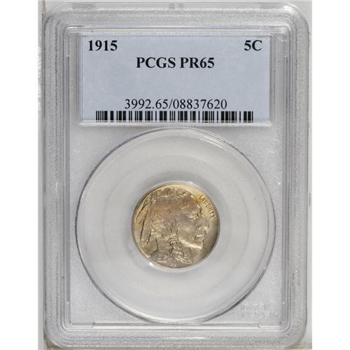 <B>1915 5C PR65 PCGS.</B></I> Pleasing satin luster covers this piece, with lilac-rose and golden patina intermixed on both sides. A carbon-free example of this scarcer matte proof nickel. The surfaces are blemish-free, although a wispy die crack traverses the bison's midsection. A mere 1,050 specimens were minted in 1915.<BR><BR><b>Shipping:</b> Coin/Currency (<a target="_blank" href="http://www.heritageauctions.com/common/shipping.php">view shipping information</a>)