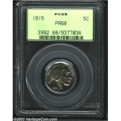 <TABLE cellSpacing=0 cellPadding=0 width="100%" bgColor=#000000 border=0><TBODY><TR><TD width="100%"><TABLE cellSpacing=1 cellPadding=3 width="100%" border=0><TBODY><TR><TD width="100%" bgColor=#79735c><FONT face=arial color=#ffffff size=3><B>Description</B> </FONT></TD></TR><TR><TD width="100%" bgColor=#ffffff><FONT face=arial size=2><B>1915 5C PR68 PCGS.</B></I> The 1915 is not quite as frequently encountered as the 1914, and in high grades it is much more elusive. It is the final matte proof nickel to top the 1,000 coin mark (but just barely) with 1,050 pieces struck. The surfaces on this piece are immaculate, as one would imagine, and display the expected full, intricate detailing that can only be found on proof examples. Rich golden and lilac toning is spread over each side with satiny underlying luster. Another high quality matte proof in this exceptional run. Only one other 1915 has been so graded by PCGS and none are finer (4/03). </FONT></TD></TR></TBODY></TABLE></TD></TR></TBODY></TABLE><BR><A name=PricesRealized></A><TABLE cellSpacing=0 cellPadding=0 width="100%" bgColor=#000000 border=0><TBODY><TR><TD width="100%"><TABLE cellSpacing=1 cellPadding=3 width="100%" border=0><TBODY><TR><TD width="100%" bgColor=#79735c><A name=PR><FONT face=arial color=#ffffff size=3><B>Previous Prices from Heritage Auctions</B> </FONT></A></TD></TR><TR><TD bgColor=#f6f6ed>No Prior Data Recorded </TD></TR><TR><TD bgColor=#ffffff><FONT face=arial size=1 ?>PLEASE NOTE: All prices realized reflect the final hammer price PLUS the buyer's premium in auctions that charge a buyer's premium. Each item has a notation at the top of the listing indicating whether that lot included a buyer's premium. Example: A item that sells with a final hammer price of $100 and a 20% buyer's premium will display with a price realized of $120. All information listed is intended to be as accurate as possible, but errors are possible. Please use this guide carefully and inform us of any inaccuracies. </FONT></TD></TR></TBODY></TABLE></TD></TR></TBODY></TABLE><BR><TABLE cellSpacing=0 cellPadding=0 width="100%" bgColor=#000000 border=0><TBODY><TR><TD width="100%"><TABLE cellSpacing=1 cellPadding=3 width="100%" border=0><TBODY><TR><TD width="100%" bgColor=#79735c colSpan=6><FONT face=arial color=#ffffff size=3><B>Price Guide*</B> </FONT></TD></TR><TR bgColor=#f6f6ed><TD align=middle><B>Grade</B> </TD><TD align=middle><B>Coin World<BR>(Trends)</B> </TD><TD align=middle><B>Numismedia<BR>Retail</B> </TD><TD align=middle><B>Numismedia<BR>Wholesale</B> </TD><TD align=middle><B>Coin<BR>Universe</B> </TD><TD align=middle><B>Heritage<BR>Value Index</B> </TD></TR><TR bgColor=#ffffff><TD align=middle>67</TD><TD align=right>---</TD><TD align=right>---</TD><TD align=right>$3,750.00</TD><TD align=right>$6,000.00</TD><TD align=right>$2,604.67</TD></TR><TR style="FONT-WEIGHT: bold" bgColor=#cccfdd><TD align=middle>68</TD><TD align=right>---</TD><TD align=right>---</TD><TD align=right>---</TD><TD align=right>---</TD><TD align=right>---</TD></TR><TR bgColor=#ffffff><TD align=middle>69</TD><TD align=right>---</TD><TD align=right>---</TD><TD align=right>---</TD><TD align=right>---</TD><TD align=right>---</TD></TR><TR bgColor=#ffffff><TD colSpan=6><FONT size=1>*All information listed is intended to be as accurate as possible, but errors are possible. No item may be returned or refused based on this information which is provided as a service to our customers. You should contact each pricing source directly to determine the accuracy of this information. </FONT></TD></TR></TBODY></TABLE></TD></TR></TBODY></TABLE><BR><TABLE cellSpacing=0 cellPadding=0 width="100%" bgColor=#000000 border=0><TBODY><TR><TD width="100%"><TABLE cellSpacing=1 cellPadding=3 width="100%" border=0><TBODY><TR><TD width="100%" bgColor=#79735c><FONT face=arial color=#ffffff size=3><B>Population Guide</B> </FONT></TD></TR><TR bgColor=#ffffff><TD align=middle><!-- Begin Output of Population Grid--><TABLE cellSpacing=0 cellPadding=0 width="100%" border=0><TBODY><TR><TD vAlign=center><TABLE cellSpacing=0 width="100%" border=1 cellsadding="3"><TBODY><TR><TD vAlign=center><TABLE cellSpacing=0 cellPadding=3 width="100%" border=1><TBODY><TR><TD vAlign=center align=middle bgColor=#f0f1e8 colSpan=2 <CENTER><FONT face=Arial size=2><B>PCGS Pop </B></FONT><CENTER></CENTER></TD><TD vAlign=center align=middle bgColor=#f0f1e8 colSpan=2><CENTER><FONT face=Arial size=2><B>NGC Pop</B></CENTER></FONT></TD></TR><TR><TD vAlign=center><FONT face=Arial size=2>(68)</FONT> </TD><TD vAlign=center align=right><FONT face=Arial size=2>2</FONT> </TD><TD vAlign=center><FONT face=Arial size=2>(68)</FONT> </TD><TD vAlign=center align=right><FONT face=Arial size=2>0</FONT> </TD></TR><TR><TD vAlign=center><FONT face=Arial size=2>(>68)</FONT> </TD><TD vAlign=center align=right><FONT face=Arial size=2>0</FONT> </TD><TD vAlign=center><FONT face=Arial size=2>(>68)</FONT> </TD><TD vAlign=center align=right><FONT face=Arial size=2>1</FONT> </TD></TR></TBODY></TABLE></TD></TR></TBODY></TABLE></TD></TR></TBODY></TABLE><!-- End Output of Population Grid--> Important notice: Heritage usually auctions material at the rate of 200-250 lots per hour. On some occasions eBay Live bid software or the Internet may not be able to keep up with the pace of the auction. We recommend placing a realistic absentee bid now as insurance to avoid disappointment. Occasionally the auctioneer may eliminate or reject an eBay Live bid, and the auctioneer may also reopen a lot after the close of the eBay live bidding (usually because we missed an audience bid), and may reject your bid even if it shows you as the winning bidder. By bidding via eBay Live, you agree that Heritage may award the lot to another bidder at its sole discretion under the circumstances described above or any other reasonable circumstances. Also please note that all Heritage lots purchased through eBay Live carry a 20% Buyer's Premium. Please make sure you read the Terms and Con