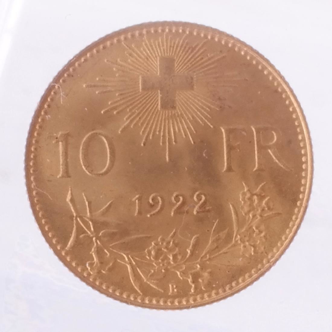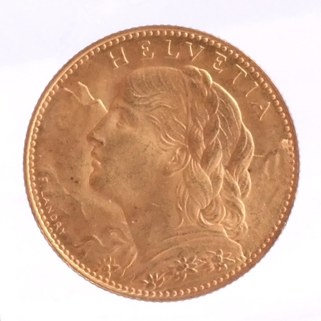 1915-B 10 Francs Swiss Gold.