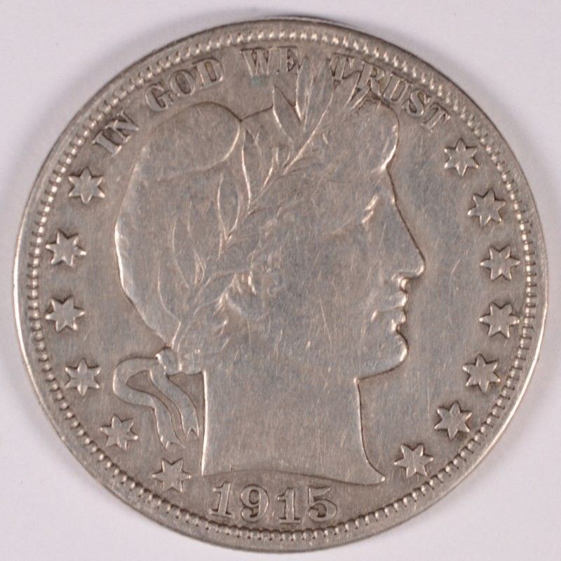 1915 BARBER HALF DOLLAR, NICE VF, KEY COIN!!