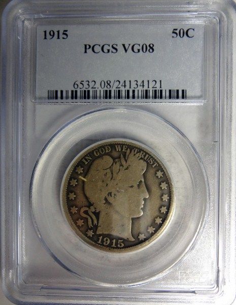 1915 BARBER HALF DOLLAR PCGS VG 8