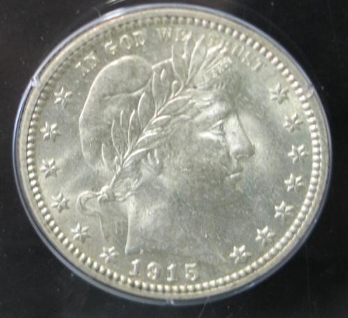 1915 BARBER QUARTER. MS63. PCGS 2175994. First Generation Holder.