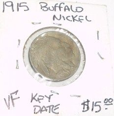 1915 BUFFALO NICKEL RED BOOK VALUE IS $15.00 *RARE KEY DATE VERY FINE GRADE*!! ***Coin, Currency & All Items Listed in this auction - Grades, Conditions and Values are not Safe Deposit Coins LLC Responsibilty. Grades, Condition and Values are determined by Consigner(s) & Buyers ONLY***