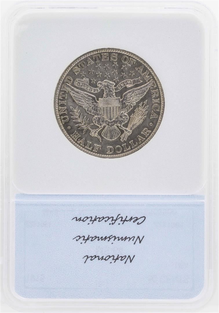 One 1915 Barber Half Dollar Coin. This coin has been graded by "National Numismatic Certification" company. However, since it is not one of the main numismatic certification companies that we currently recognize, we purposely blurred out the assigned grad