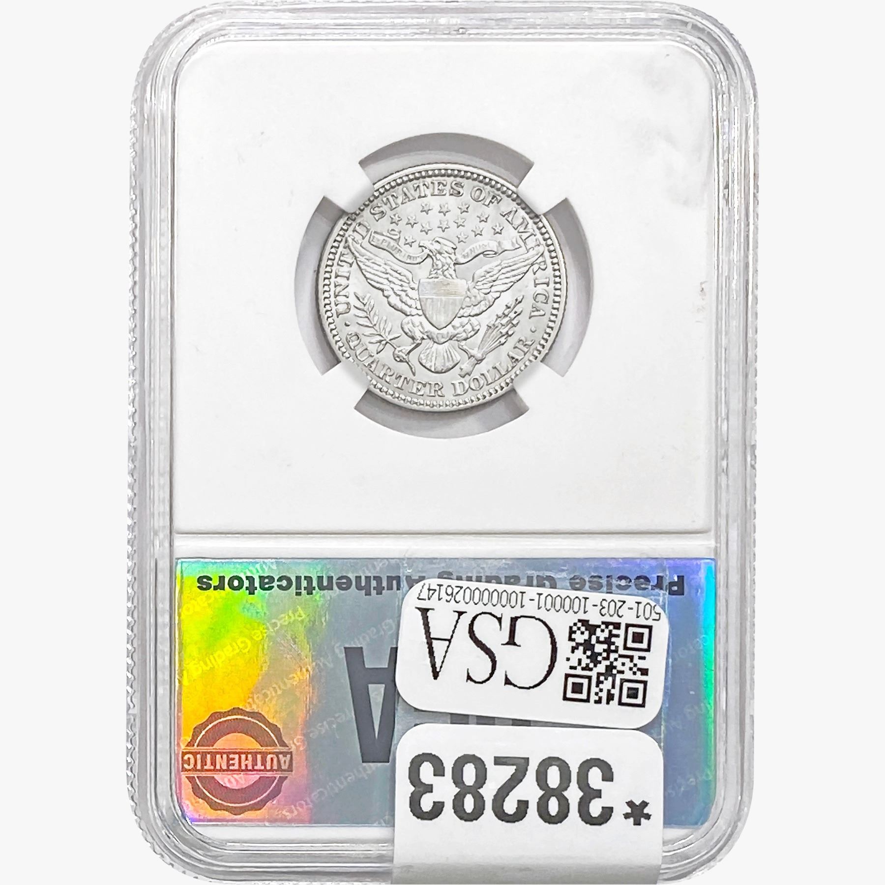 COINS AND CURRENCY LISTED IN GSA’S CATALOG AS GRADED AND ENCAPSULATED BY PCGS, NGC, ANACS, ICG, PCGS CURRENCY, PMG, PCGS BANKNOTE GRADING, CMC OR ANY OTHER THIRD-PARTY GRADING SERVICE ARE LIKEWISE SOLD “AS-IS” EXCEPT AS EXPRESSLY SET FORTH HEREIN. ALL THIRD-PARTY GRADING SERVICE GUARANTEES, INCLUDING AUTHENTICITY, ARE THE SOLE RESPONSIBILITY OF THE THIRD-PARTY GRADING SERVICE AND NOT WARRANTIES OR GUARANTEES OF GSA. BIDDERS SHOULD CONTACT THESE THIRD-PARTY GRADING SERVICES DIRECTLY WITH RESPECT TO ANY CLAIMS OR QUESTIONS THEY MAY HAVE CONCERNING THEIR GUARANTEES AND WARRANTIES. BIDDERS ACKNOWLEDGE AND AGREE THAT AUCTIONEER IS NOT BOUND BY OR LIABLE FOR ANY OPINION OR CERTIFICATION BY ANY THIRD-PARTY GRADING SERVICE. REMOVAL OF A PRODUCT FROM ITS PROTECTIVE CASING OR HOLDER OR ALTERATION OF ANY COIN HOLDER WAIVES ALL RIGHTS CONCERNING THE PRODUCT CONTAINED THEREIN.