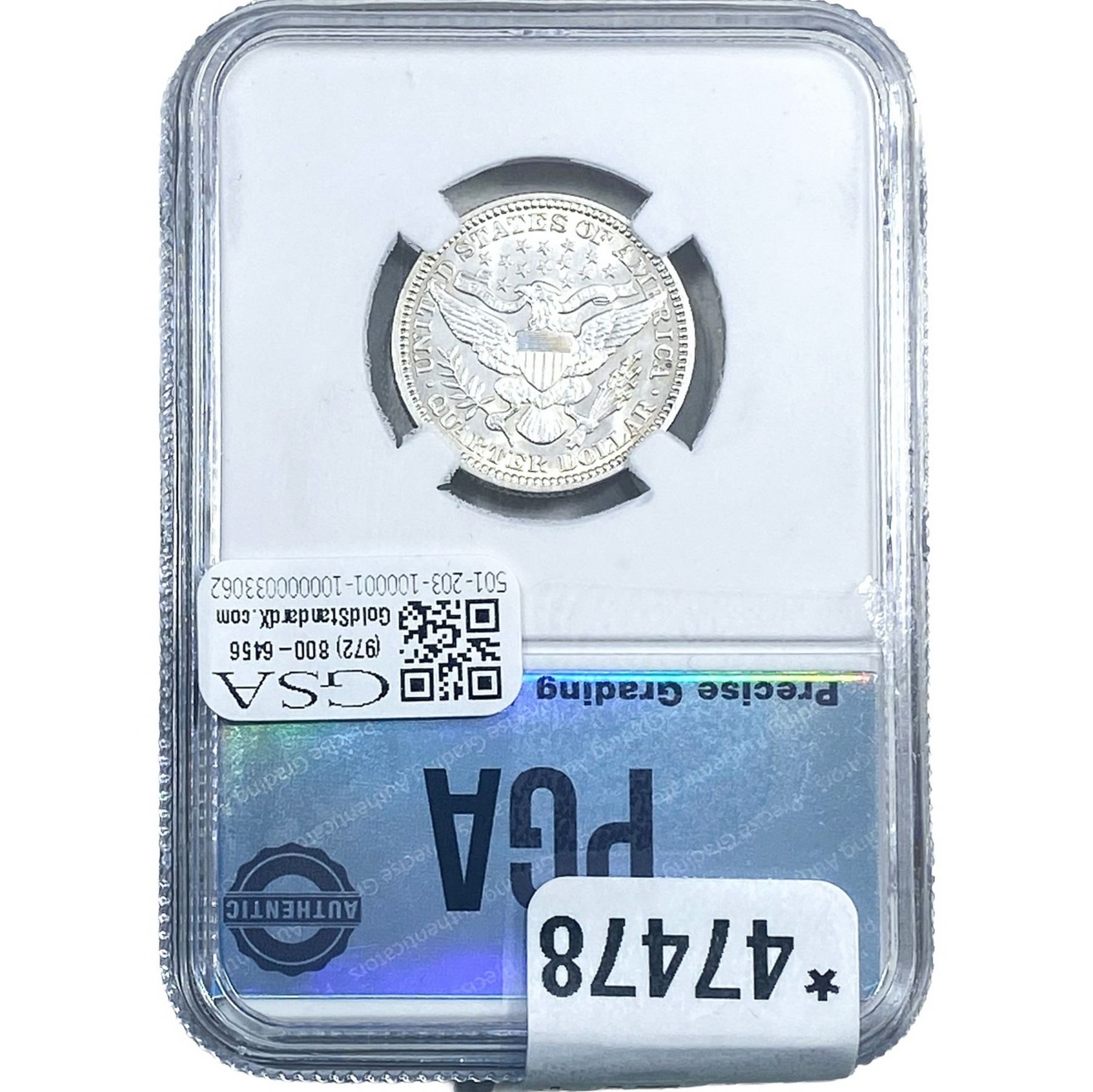 e. Coins sold referencing a third-party grading service are sold “AS IS” without any express or implied warranty, except for a guarantee by GSA that they are genuine. Removal or alteration of the holder, voids all of Bidder’s claims concerning that Product. Certain warranties may be available from the grading services and Bidders are referred to them for further details: Numismatic Guaranty Corporation (NGC), PO Box 4776, Sarasota, FL 34230, www.ngccoin.com/services/writtenguarantee.asp; Professional Coin Grading Services (PCGS), PO Box 9458, Newport Beach, CA 92658, www.pcgs.com/guarantee.html; ANACS, 6555 S. Kenton St., Ste. 303, Englewood, CO 80111; and Independent Coin Grading Co. (ICG), 7901 East Bellview, Ave., Suite 50, Englewood, CO 80111.