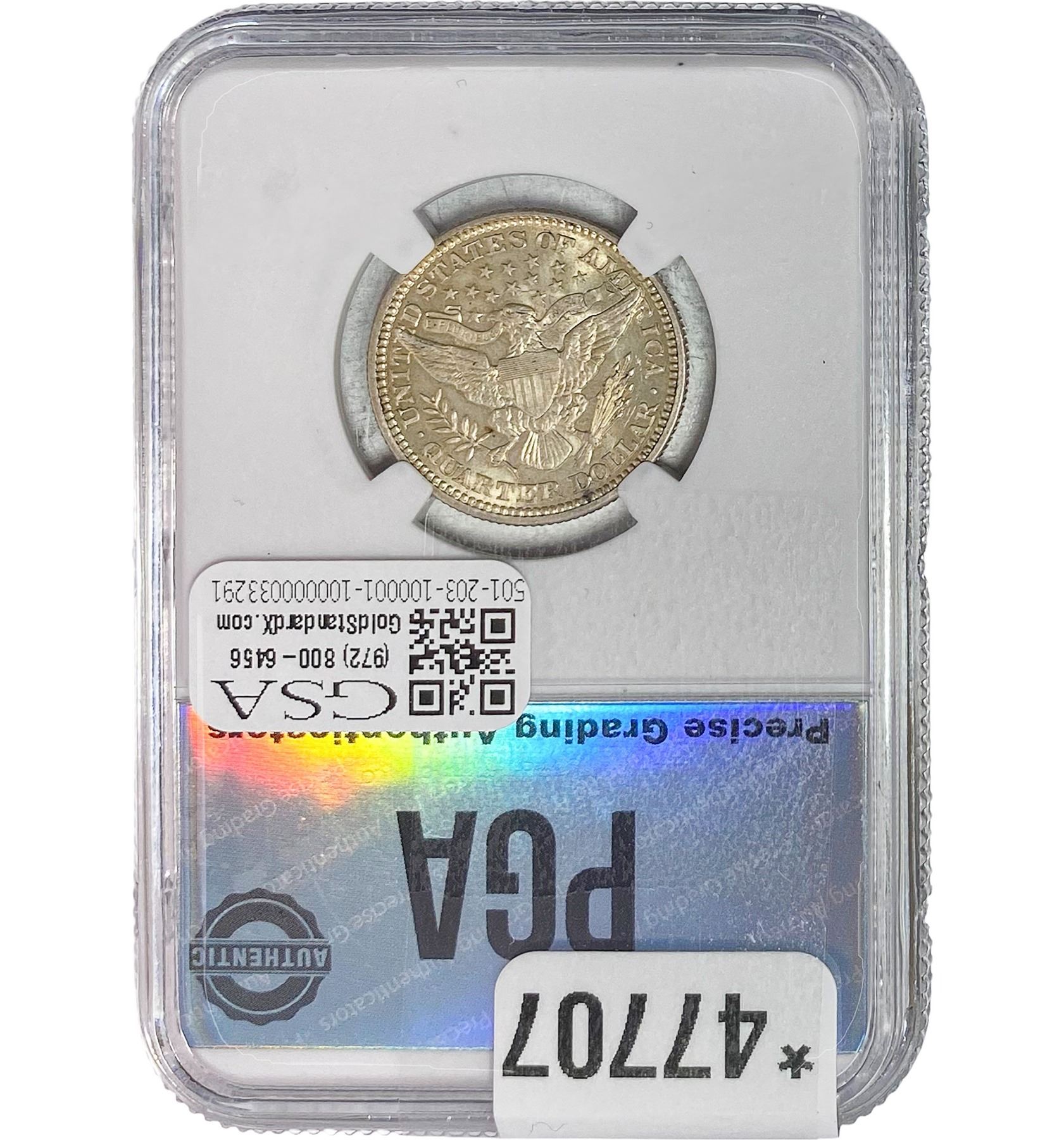 l. All non-certified coins and currency are guaranteed genuine, but are not guaranteed as to grade, since grading is a matter of opinion, an art and not a science, and therefore the description rendered by GSA or any third-party grading service may not agree with the opinion of others (including trained experts), and the same expert may not grade the same item with the same grade at two different times. GSA may, but is not obligated to, express an opinion as to non-certified numismatic items, in GSA’s opinion, or by its employees’ experience and the current interpretation of the American Numismatic Association’s standards as of the date the catalog was prepared. There is no guarantee or warranty expressed or implied that the grading opinions utilized by GSA, if any, will meet the standards of any grading service at any time in the future.