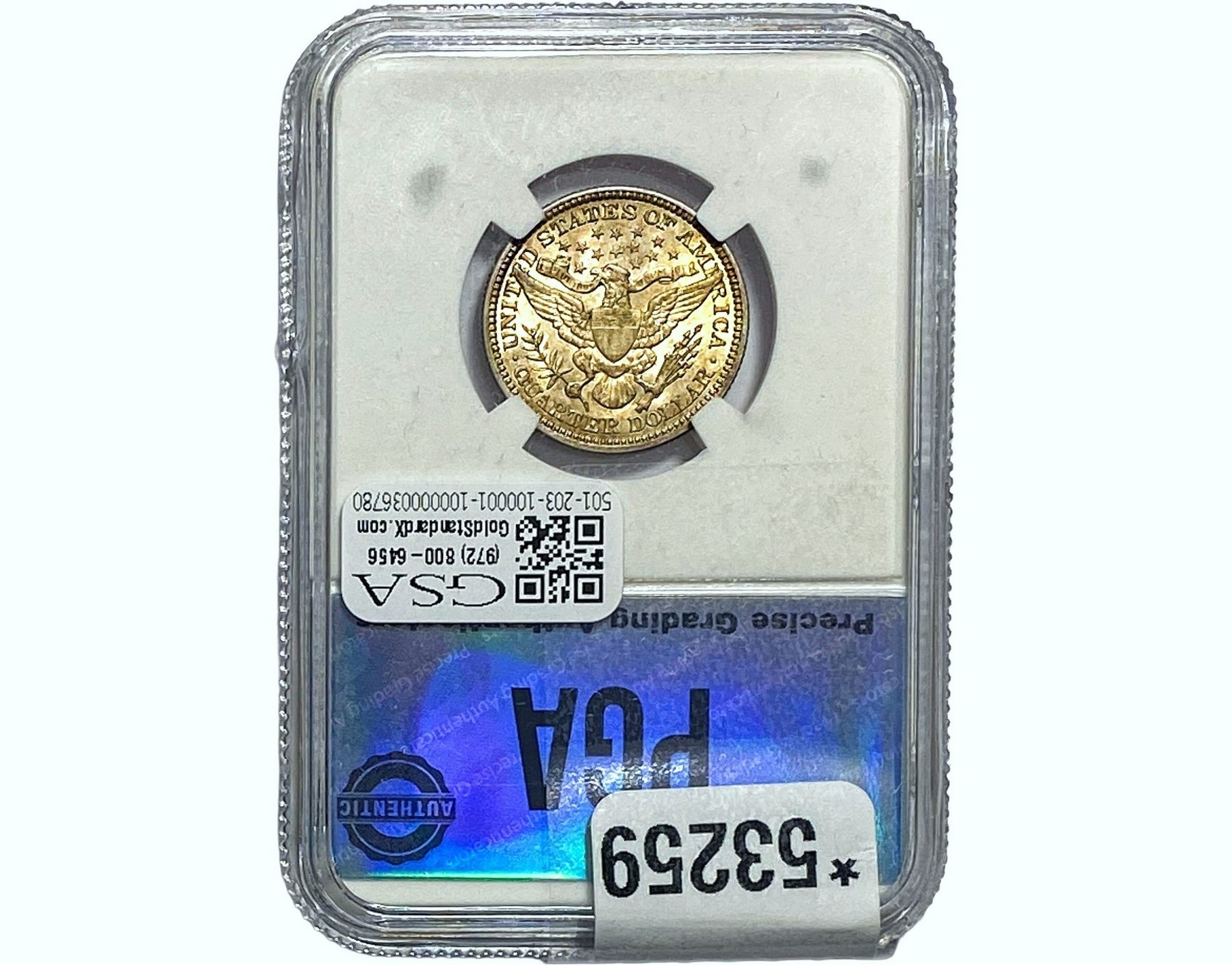 l. All non-certified coins and currency are guaranteed genuine, but are not guaranteed as to grade, since grading is a matter of opinion, an art and not a science, and therefore the description rendered by GSA or any third-party grading service may not agree with the opinion of others (including trained experts), and the same expert may not grade the same item with the same grade at two different times. GSA may, but is not obligated to, express an opinion as to non-certified numismatic items, in GSA’s opinion, or by its employees’ experience and the current interpretation of the American Numismatic Association’s standards as of the date the catalog was prepared. There is no guarantee or warranty expressed or implied that the grading opinions utilized by GSA, if any, will meet the standards of any grading service at any time in the future.