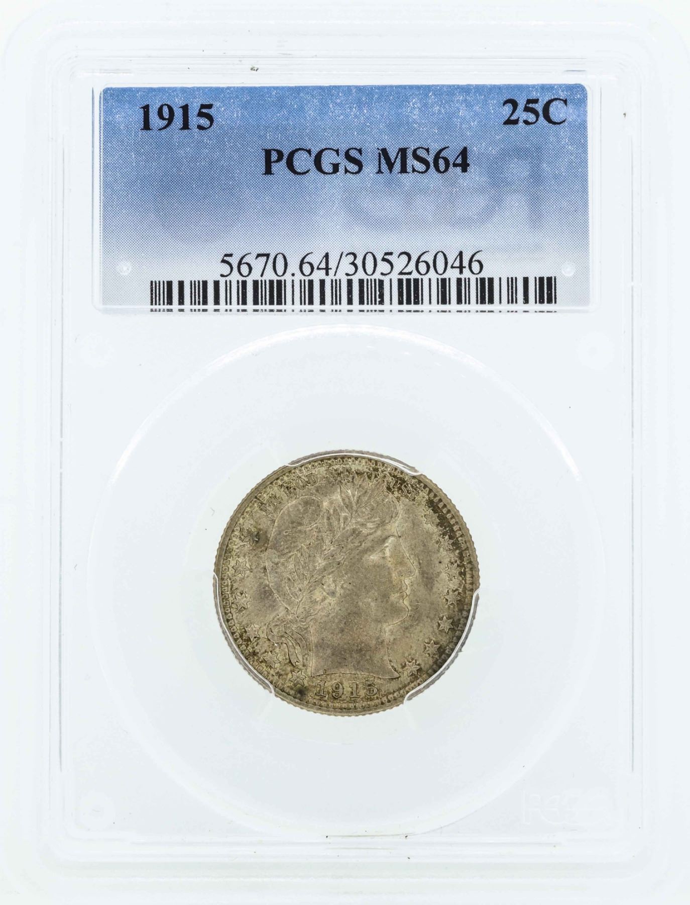 One 1915 Barber Silver Quarter Coin PCGS MS64.