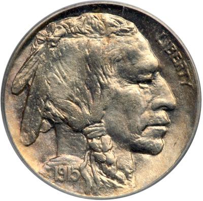 1915 Buffalo Nickel. PCGS graded MS-66. A hint of gold tone. Mint luster like brilliant frosted glass under the toning gives this Gem 1915 Buffalo nickel much of its life and pizzazz (PCGS # 3927) .