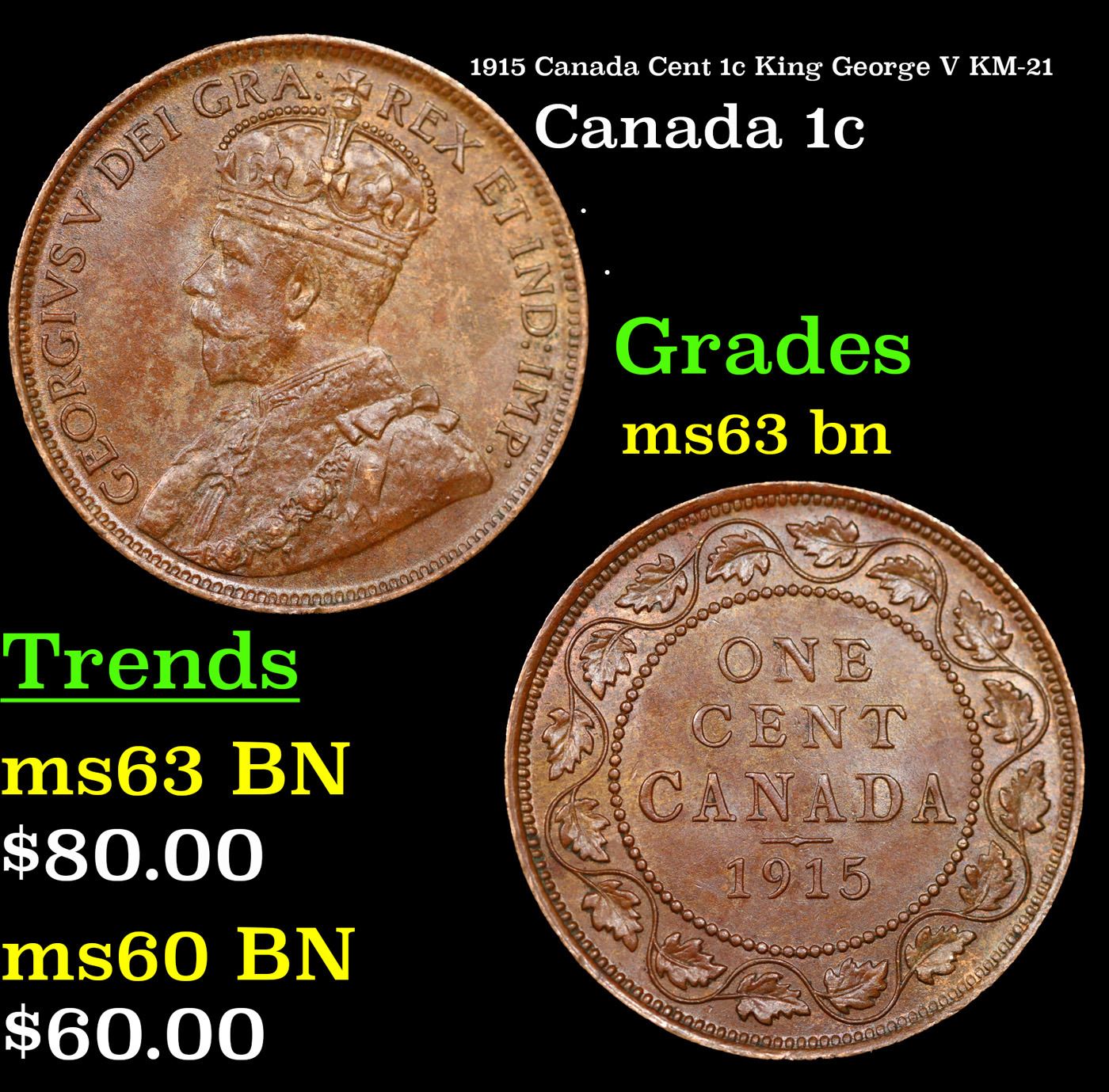1915 Canada Cent 1c King George V KM-21 Grades Select Unc BN.