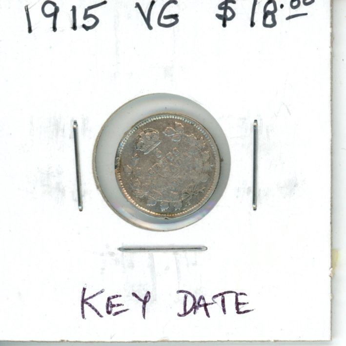 1915 Canadian Silver 5 Cents. Key Date. Mintage of 1,172,258. VG-8.