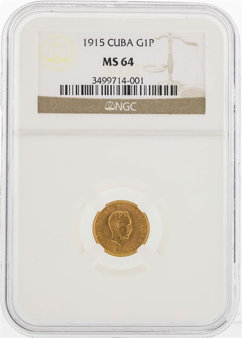 One 1915 Cuba Gold Peso Coin NGC MS64. NGC Certified.