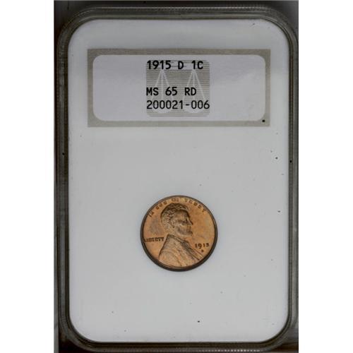 <B>1915-D<1C> MS65 Red NGC.</B></I> A lustrous and essentially unabraded orange-gold Gem with a whisper of reverse carbon and minor peripheral die wear across the reverse periphery. Similar to most branch mint cent issues from the teens, the 1915-D is conditionally rare at the MS65 Red level. In an early generation holder. Census: 33 in 65, 6 finer (2/06). <BR><BR><B>Important notice:</B> Heritage usually auctions material at the rate of 200-250 lots per hour. On some occasions eBay Live bid software or the Internet may not be able to keep up with the pace of the auction. We recommend placing a realistic absentee bid now as insurance to avoid disappointment. Occasionally the auctioneer may eliminate or reject an eBay Live bid, and the auctioneer may also reopen a lot after the close of the eBay live bidding (usually because we missed an audience bid), and may reject your bid even if it shows you as the winning bidder. By bidding via eBay Live, you agree that Heritage may award the lot to another bidder at its sole discretion under the circumstances described above or any other reasonable circumstances. Since eBay bids are not shown to us until we open the lot on the floor, we treat those bids just like floor bids. In most cases the floor responds before the eBay bid is presented to us, due to Internet lag time, so for consistency we have made it a policy that floor bids are always considered first over tie eBay live bids. Also please note that all Heritage lots purchased through eBay Live carry a 20% Buyer's Premium. Please make sure you read the Terms and Conditions before you bid. This lot is being auctioned in conjunction with a live floor auction by Heritage Galleries & Auctioneers. All final auction and invoice information will be supplied by Heritage Galleries & Auctioneers, and all other information should be considered preliminary. Lot:621 <BR><BR><B>Winning Notification and Billing:</B> After the FINAL session in this auction is complete, Heritage will send e-mail and snail mail invoices. This process normally takes several days. All final auction and invoice information will be supplied by Heritage Galleries & Auctioneers, and all other information should be considered preliminary. <BR><BR>This auction will be conducted on a live auction floor and over the Internet through eBay Live. If you choose to place an absentee bid, please take a moment to <font color='#0000ff'><u><a href='http://pages.ebay.com/liveauctions/help/before/laabsentee.html'>learn how eBay Live absentee bidding works</a></u></font><font color='#000000'>