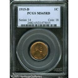 <B>1915-D 1C MS65 Red PCGS.</B></I> A lovely red-orange example that shows minor weakness on the upper reverse motto, but excels in all other areas. Luscious color and luster combines with seemingly impeccable preservation on this no-questions Gem. Population: 111 in 65, 16 finer (1/05). Lot:5425