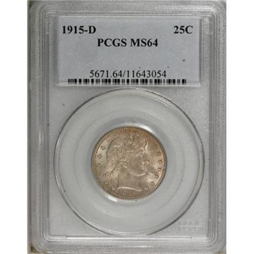 <B>1915-D 25C MS64 PCGS.</B></I> Straw-gold and slate-gray embrace this precisely struck Choice silver type coin. Lustrous and attractively preserved.<BR><BR><b>Shipping:</b> Coins & Currency (<a target="_blank" href="http://www.heritageauctions.com/common/shipping.php">view shipping information</a>)