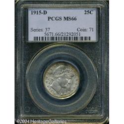 1915-D 25C MS66 PCGS. Well struck and satiny, with 1915-D 25C MS66 PCGS.