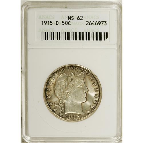 1915-D 50C MS62 ANACS. NGC Census: (53/242). PCGS