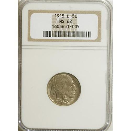 <B>1915-D 5C MS62 NGC.</B></I> NGC Census: (116/332). PCGS Population (73/538). Mintage: 7,569,000. Numismedia Wsl. Price for NGC/PCGS coin in MS62: $196. (#3928)<BR><BR><b>Shipping:</b> Coins & Currency (<a target="_blank" href="http://www.heritageauctions.com/common/shipping.php">view shipping information</a>)