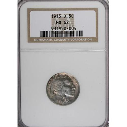 <B>1915-D 5C MS62 NGC.</B></I> NGC Census: (117/334). PCGS Population (76/546). Mintage: 7,569,000. Numismedia Wsl. Price for NGC/PCGS coin in MS62: $196. (#3928)<BR><BR><B>Coin Engraver:</B> James E. Fraser<BR><BR><b>Shipping:</b> Coins & Currency (<a target="_blank" href="http://www.heritageauctions.com/common/shipping.php">view shipping information</a>)