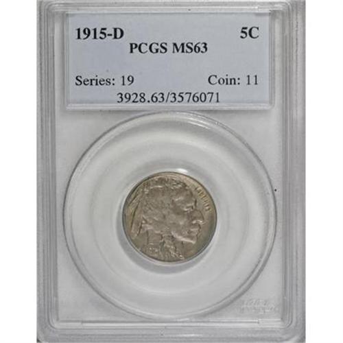 <B>1915-D 5C MS63 PCGS.</B></I> PCGS Population (208/338). NGC Census: (112/222). Mintage: 7,569,000. Numismedia Wsl. Price for NGC/PCGS coin in MS63: $304. (#3928)<BR><BR><B>Coin Engraver:</B> James E. Fraser<BR><BR><b>Shipping:</b> Coins & Currency (<a target="_blank" href="http://www.heritageauctions.com/common/shipping.php">view shipping information</a>)