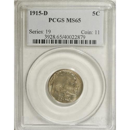 1915-D 5C MS65 PCGS. An attractive Gem, softly lustrou