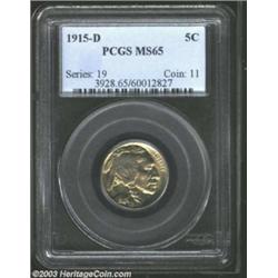 1915-D 5C MS65 PCGS. Both sides are brightly lustrous beneath an overlay of delicate golden patina. Sharp, and possessed of few blemishes of any kind. Important notice: We expect to be auctioning lots at the rate of 200-250 per hour. On occasion eBay live bid software cannot keep up with the pace of the auctions where 4-5 lots per minute can hammer down, so we recommend that you place a realistic absentee bid now as insurance to avoid disappointment. Also please note that all Heritage/CAA lots purchased through eBay Live carry a 20% Buyer's Premium. Please make sure you read the Terms and Conditions.
