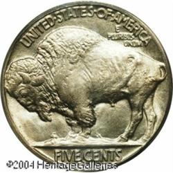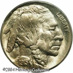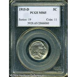 1915-D 5C MS65 PCGS. This elusive early D-mint Buf <B>1915-D 5C MS65 PCGS.</B></I> This elusive early D-mint Buffalo carries a thin coating of silver-gray and golden patina. This is the first year that the Denver mint encountered problems striking this design however, this example reveals little evidence of that difficulty. The central obverse details and the corresponding reverse details are also notably sharp, save for a slight amount of detail on the bison's head. The surfaces, however, are lustrous and free of the contact marks that characterize lower Mint State specimens. Overall, an appealing Gem representation that would do justice to a fine collection. <BR><BR><B>Important notice:</B> Heritage usually auctions material at the rate of 200-250 lots per hour. On some occasions eBay Live bid software or the Internet may not be able to keep up with the pace of the auction. We recommend placing a realistic absentee bid now as insurance to avoid disappointment. Occasionally the auctioneer may eliminate or reject an eBay Live bid, and the auctioneer may also reopen a lot after the close of the eBay live bidding (usually because we missed an audience bid), and may reject your bid even if it shows you as the winning bidder. By bidding via eBay Live, you agree that Heritage may award the lot to another bidder at its sole discretion under the circumstances described above or any other reasonable circumstances. Since eBay bids are not shown to us until we open the lot on the floor, we treat those bids just like floor bids. In most cases the floor responds before the eBay bid is presented to us, due to Internet lag time, so for consistency we have made it a policy that floor bids are always considered first over tie eBay live bids. Also please note that all Heritage lots purchased through eBay Live carry a 20% Buyer's Premium. Please make sure you read the Terms and Conditions before you bid. This lot is being auctioned in conjunction with a live floor auction by Heritage Galleries & Auctioneers. All final auction and invoice information will be supplied by Heritage Galleries & Auctioneers, and all other information should be considered preliminary. Lot:5566