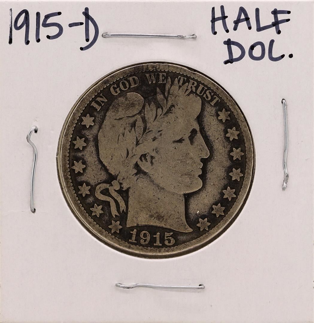 One 1915-D Barber Half Dollar Coin.
