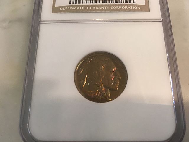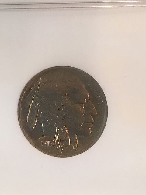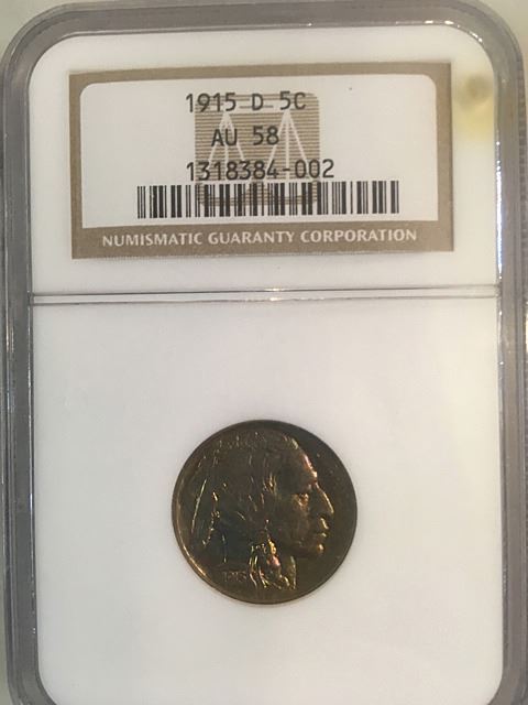 1915 D Buffalo Nickel, graded, brilliant and uncirculated.