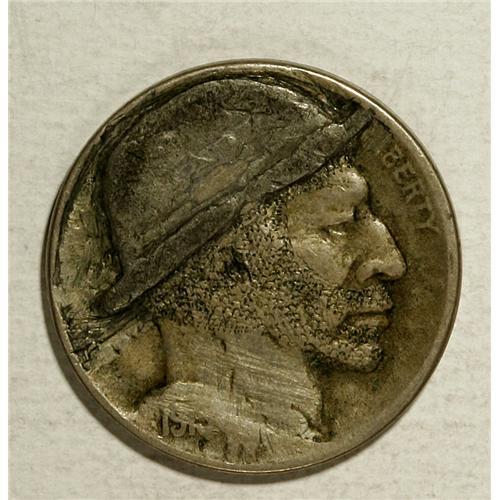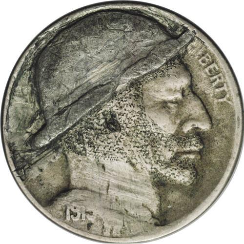 <B>1915-D:</B></I> This Below Average carving by an unknown artist is obviously in this set because of the date. The hat is roughly done as is the facial hair and ear. Heavy chisel marks appear on the neck. The host coin is a Very Fine.<BR><BR><b>Shipping:</b> Coin/Currency (<a target="_blank" href="http://www.heritageauctions.com/common/shipping.php">view shipping information</a>)