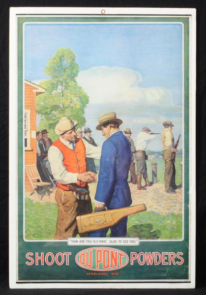 Dupont Powders 1915 Lithograph Picture Rare, Upper and Lower Band Intact. Image Measures 19.5"x30"