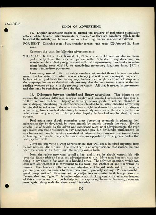 Scarce original collection page on the reverse of a real estate course manual; 6 scarce early pieces