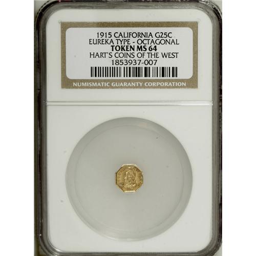 1915 Eureka Gold Token, MS64 NGC. Gold quarter dollar s
