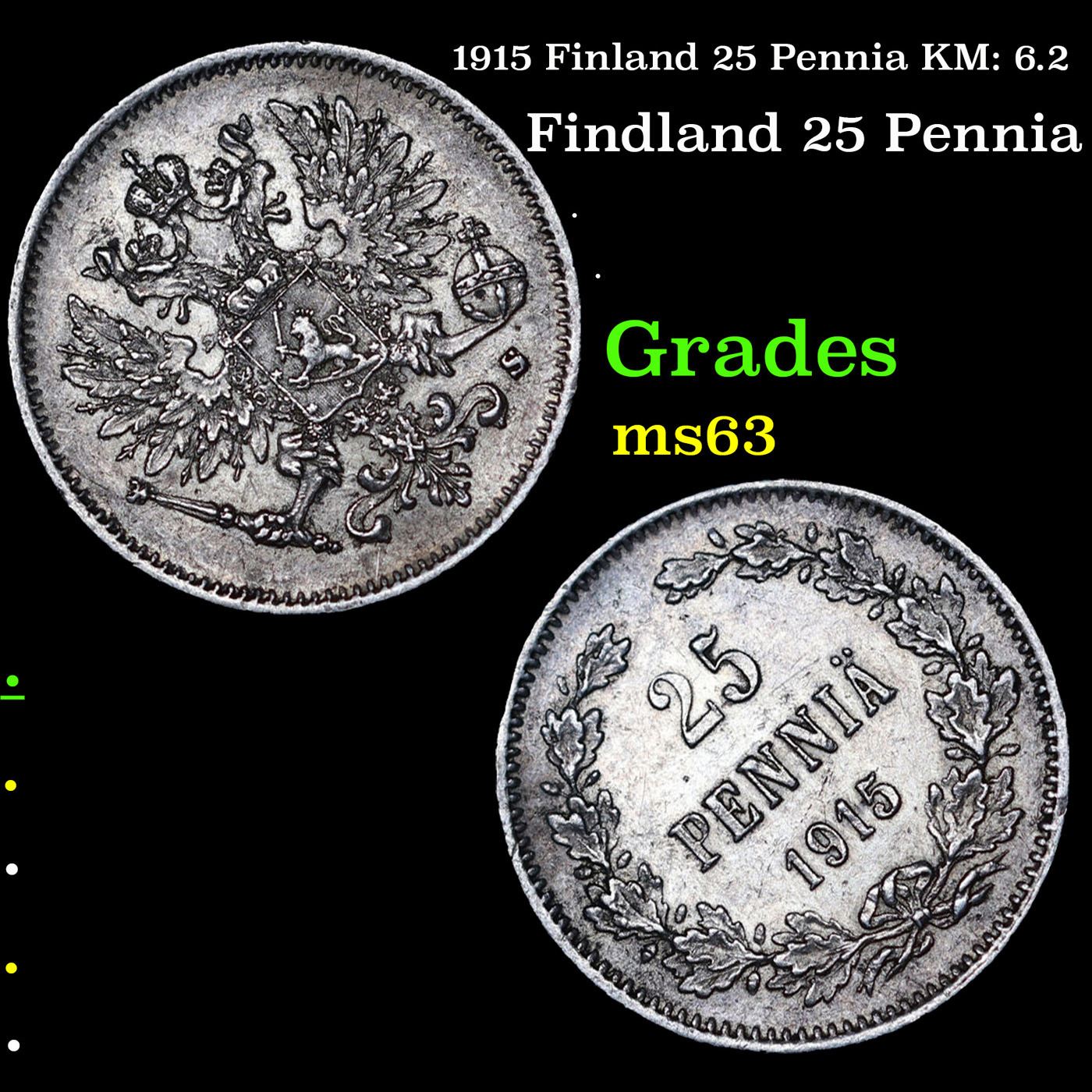 1915 Finland 25 Pennia KM: 6.2 Grades Select Unc.