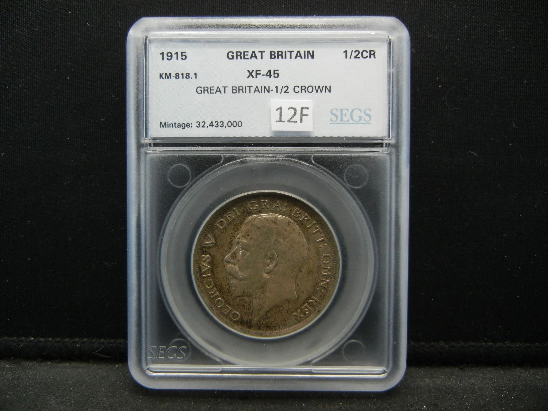 1915 Great Britain 1/2 Crown. SEGS XF-45.