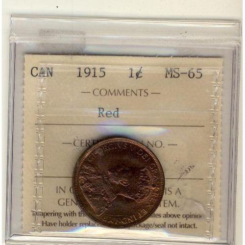 1915 ICCS MS65 Red, 95% Red lustre. A very nice "George V" example in pristine condition.