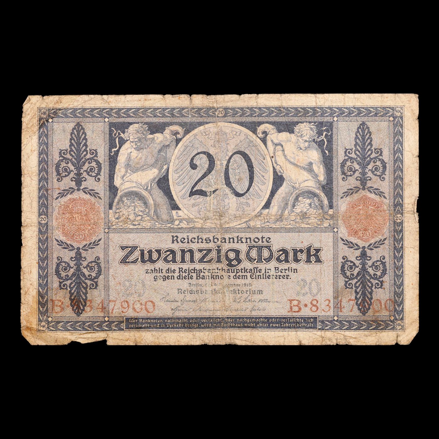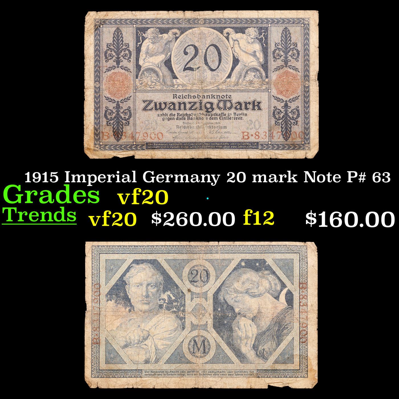 1915 Imperial Germany 20 mark Note P# 63 Grades vf, very fine.