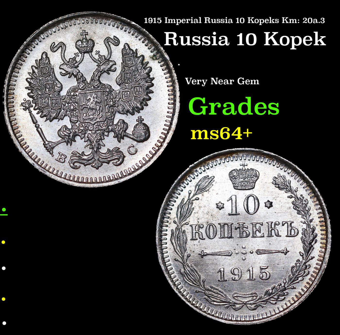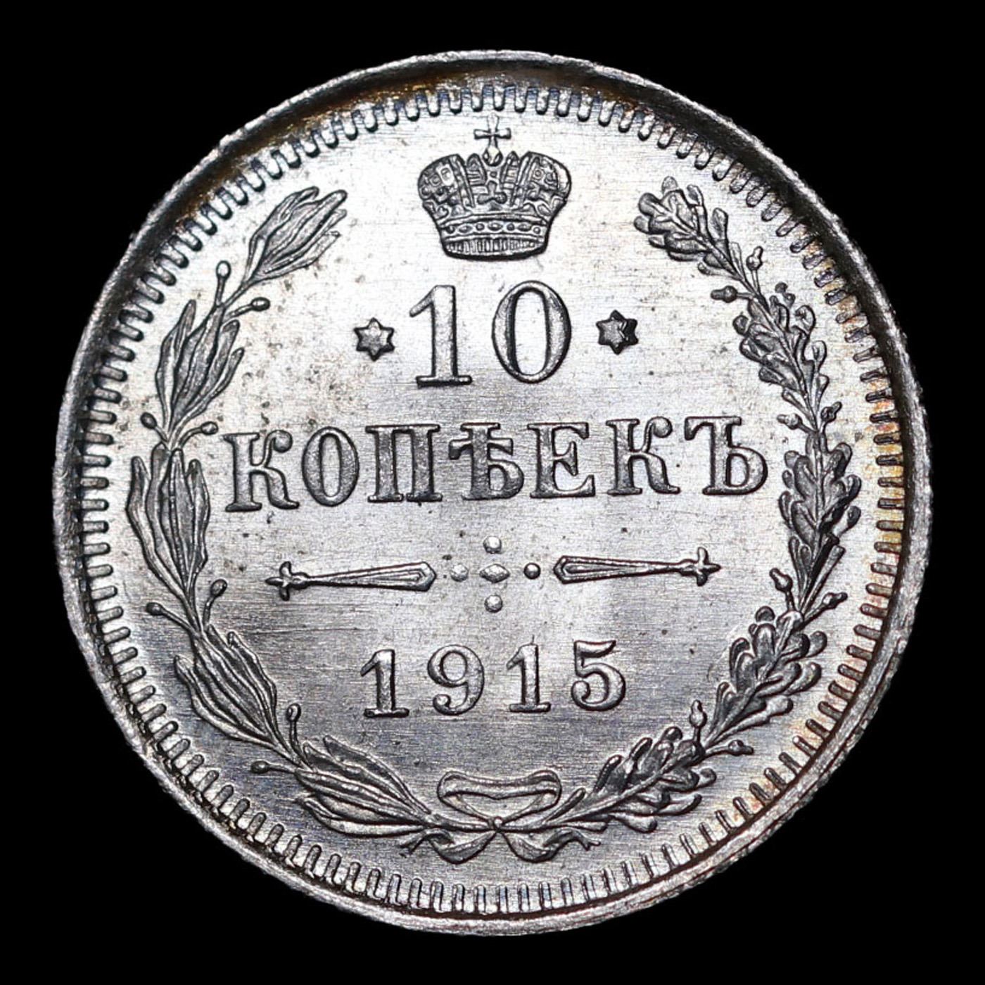 1915 Imperial Russia 10 Kopeks Km: 20a.3 Grades Choice+ Unc.