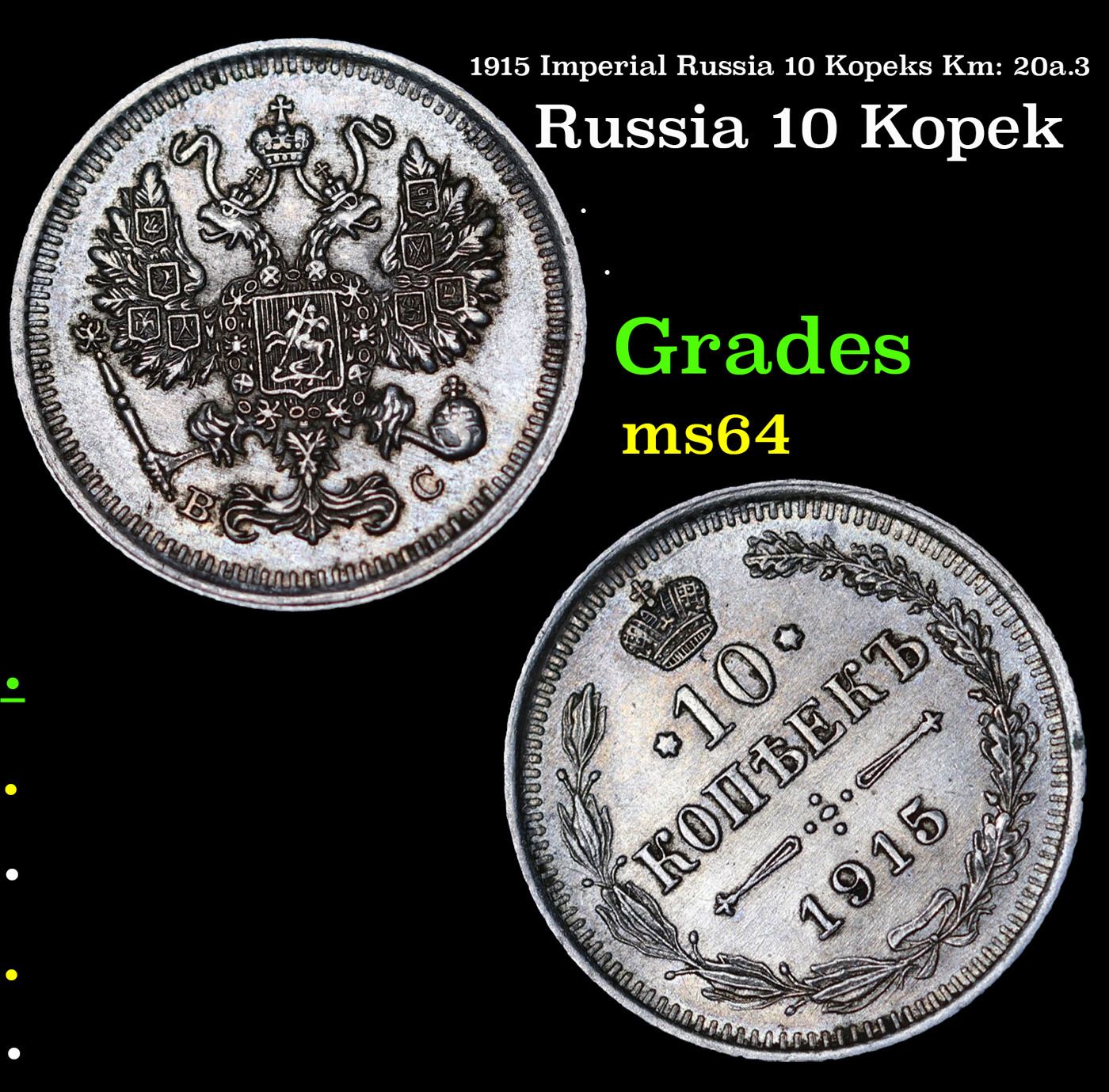 1915 Imperial Russia 10 Kopeks Km: 20a.3 Grades Choice Unc.