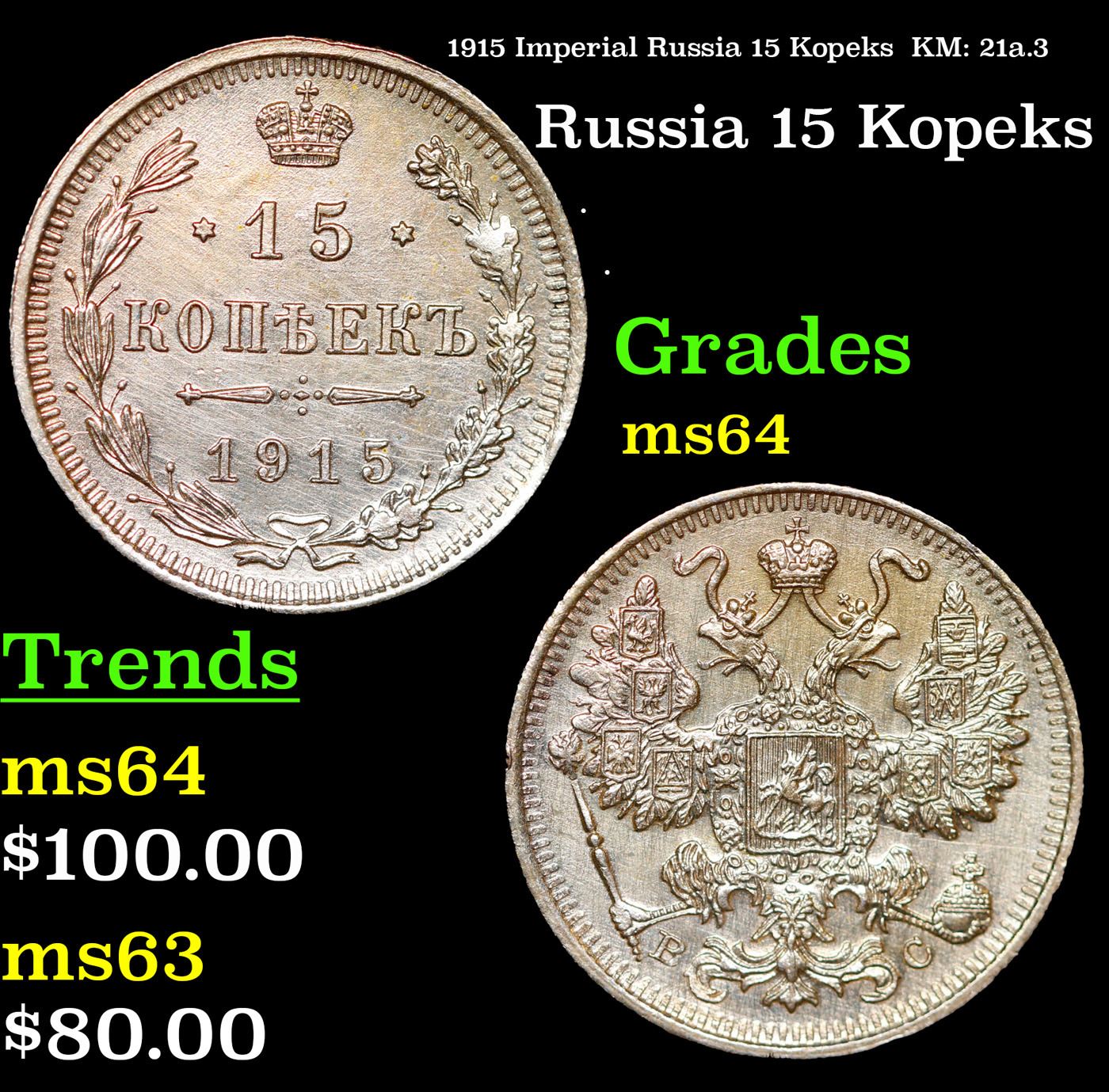 1915 Imperial Russia 15 Kopeks KM: 21a.3 Grades Choice Unc.