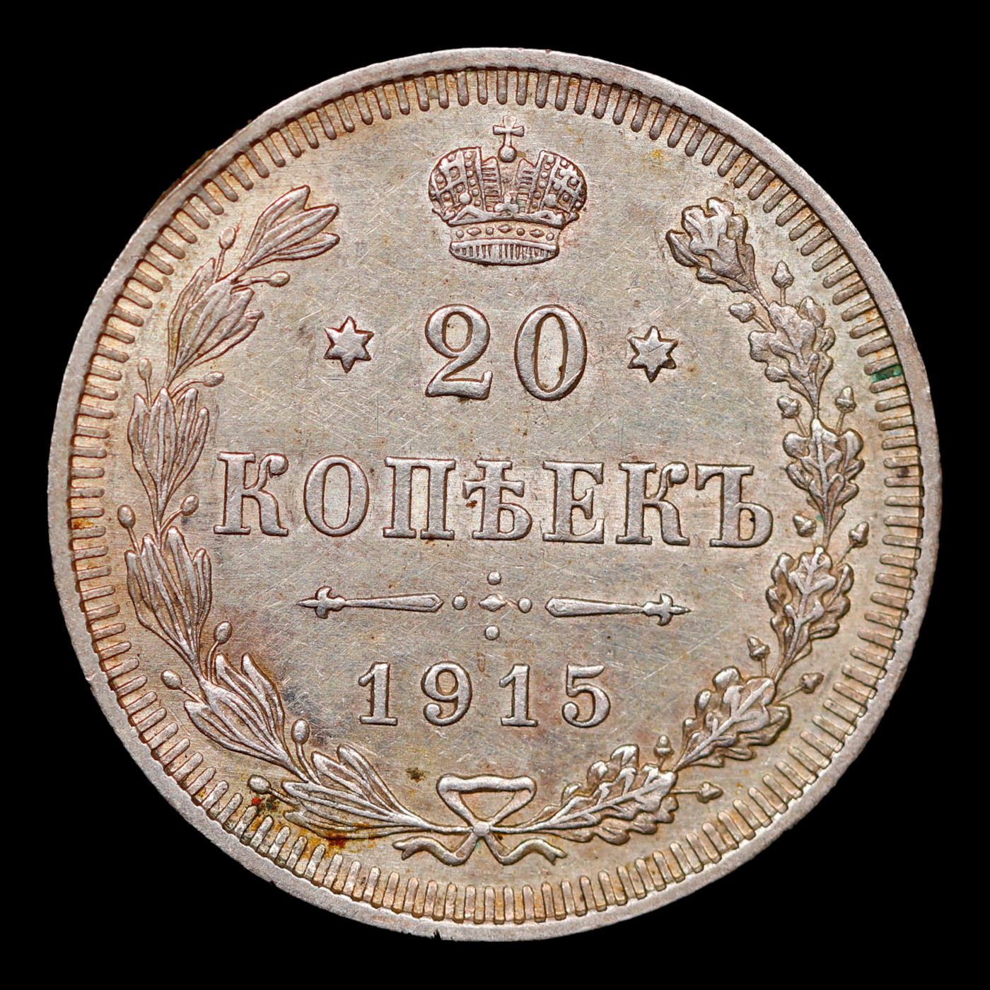 1915 Imperial Russia 20 Kopeks KM: 22a.2 Grades Select Unc.