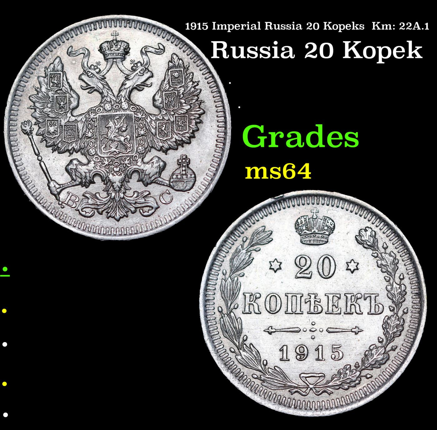 1915 Imperial Russia 20 Kopeks Km: 22A.1 Grades Choice Unc.