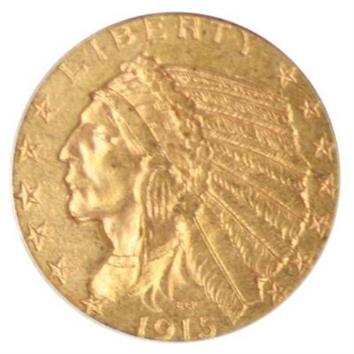 1915 Indian Head US $5 Pacific Coin Grading Service Certified Gold Coin MS61