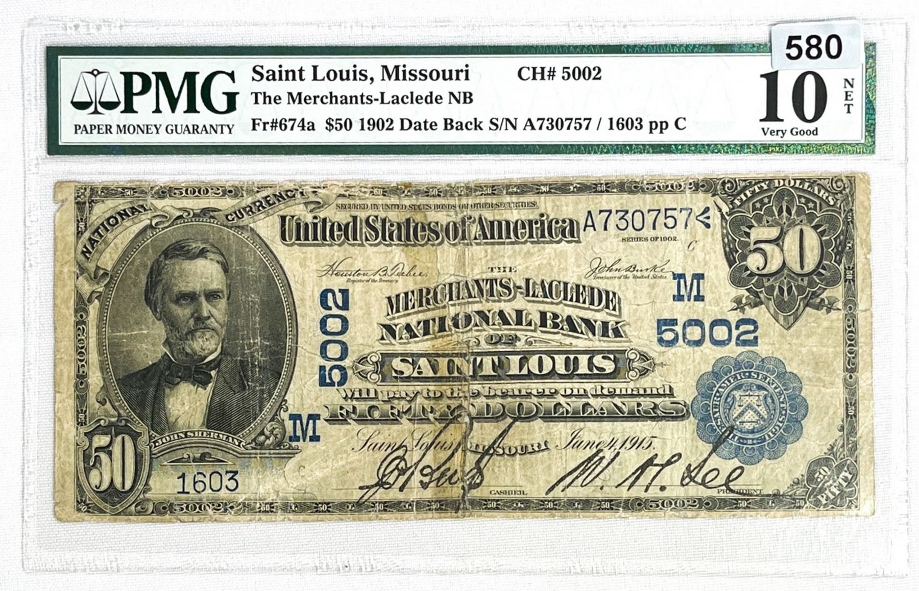 1915 LG $50 Saint Louis MO Nat. Bank Note PMG-10