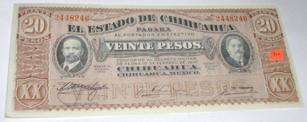 1915 MEXICAN REVOLUTIONARY $20 VEINTE PESOS CHIHUAHUA BILL *EXTREMELY RARE UNC HIGH GRADE BILL*!! BILL CAME OUT OF SAFE!! ***Coin, Currency & All Items Listed in this auction - Grades, Conditions and Values are not Safe Deposit Coins LLC Responsibilty. Grades, Condition and Values are determined by Consigner(s) & Buyers ONLY