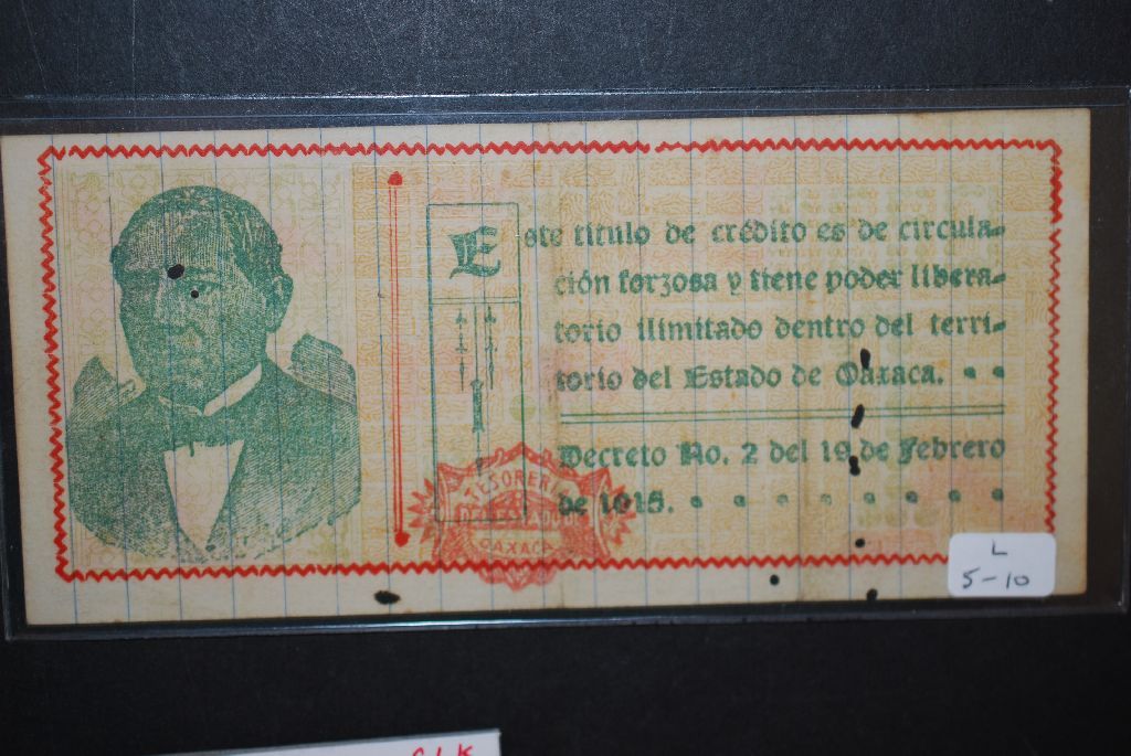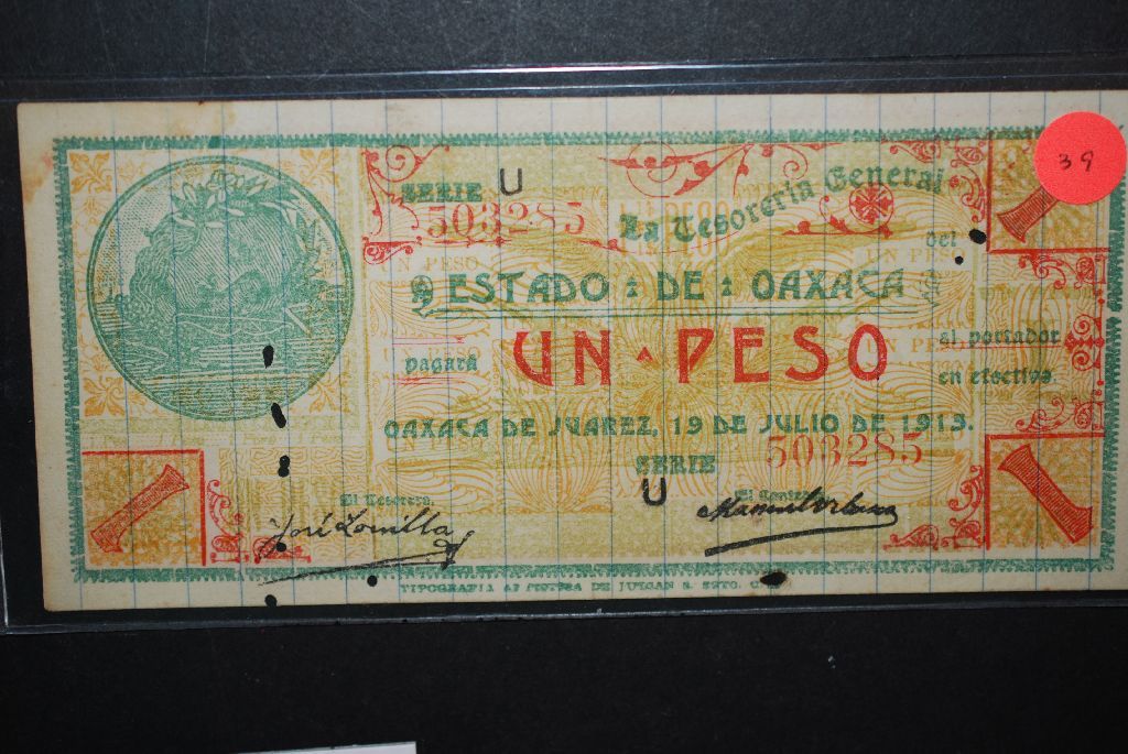 1915 Mexico Oaxaca State Un Peso Foreign Bank Note; EST. $5-10