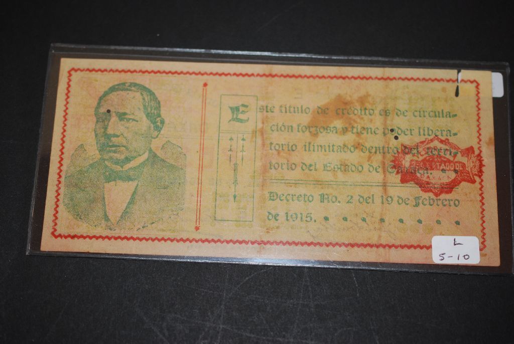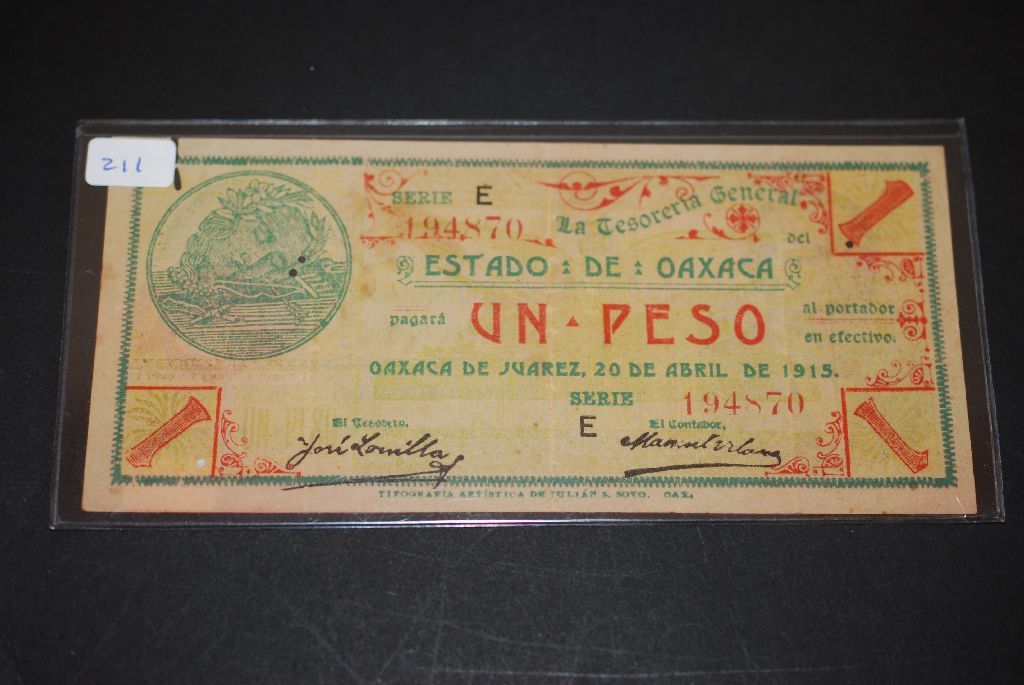 1915 Mexico Un Peso Foreign Bank Note; EST. $5-10