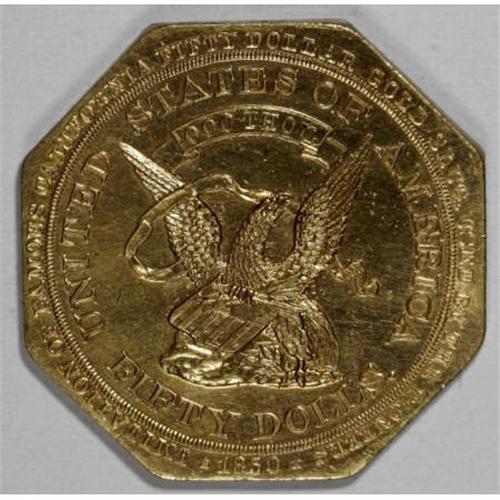<B>1915 Octagonal Dollar, HK-424, AU Uncertified.</B></I> Gilt bronze, 40.4 x 40.4 mm. One of two official souvenir dollars issued for the 1915 Panama-Pacific Exposition. This example is signed C.G. BRINKERS, S.F. on the lower obverse. Brinkers prepared the dies for Irvine & Jachens, a badge-manufacturing company in Daly City, California, that is still in business to this day. Although the surfaces are hairlined on both sides from an improper cleaning, this piece has fully Uncirculated details and shows well. Listed as "very rare" by Hibler-Kappen (1963). <BR><BR><b>Shipping:</b> Coins & Currency (<a target="_blank" href="http://www.heritageauctions.com/common/shipping.php">view shipping information</a>)