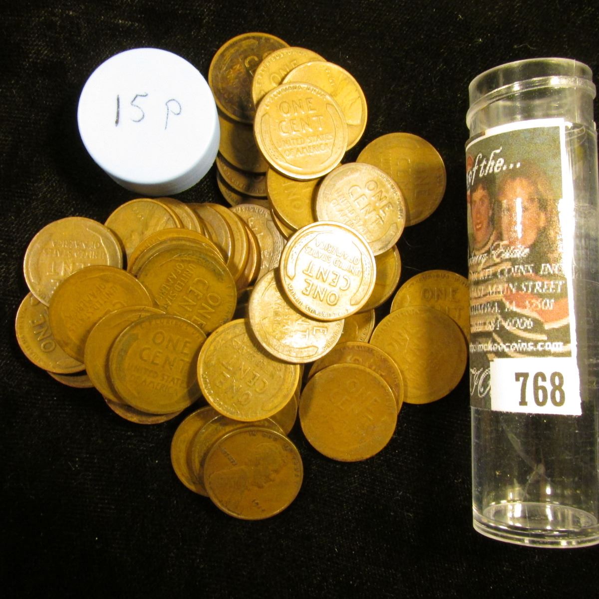1915 P Solid-date Roll of Lincoln Cents (56 pcs.) Average circulated.